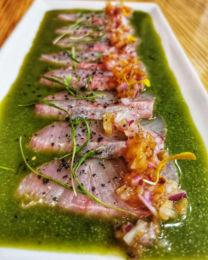 TATAKI DE VACA HECHA AL CAMADO CON BONIATO EN TEXTURAS