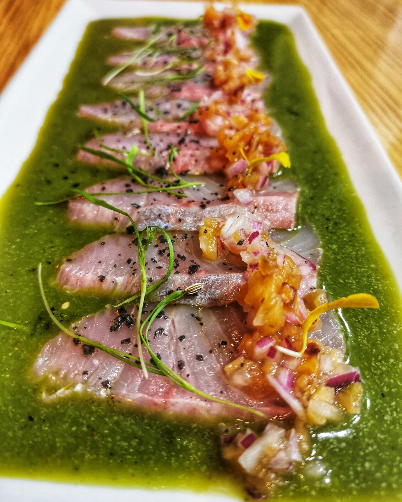 ATUN ROJO CON PAPA DE RIO Y HUEVO CAMPERO